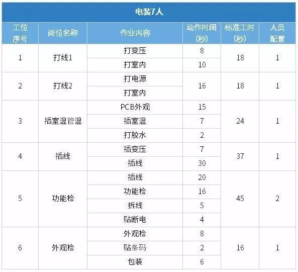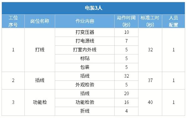產品標準工時指的是每個工位所用時間的總和,其計算公式為